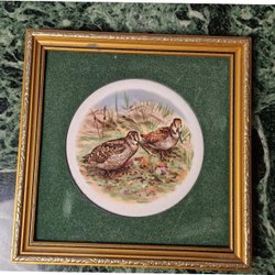 Vintage board with bird motif Woodcocks in porcelain England