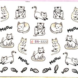 Nail Art Stickers ark Doodles playful cats fish meow cute kawaii trend