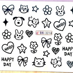 Nail Art Stickers Doodles cats dog rabbit flower star bow kawaii trend