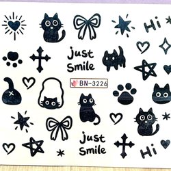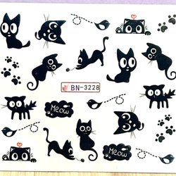 Nail Art Stickers ark Doodles cartoon black cats paws kawaii trend