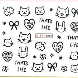 Nail Art Stickers Doodles cats bow rabbit hearts life love kawaii trend