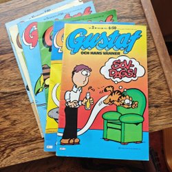 Sedan den första utgåvan av Katten Gustaf släpptes, har den läsande publiken skrattat, skrockat och fullkomligt älskat dessa serietidningar. Genom åren har vi följt med på hans äventyr, från att lata sig till solen går ner till att komma på nya, kreativa sätt att smita från sin diet. Denna charmiga, överviktiga katt har haft en permanent plats i våra hjärtan och på våra bokhyllor. På Tradera finns det en guldgruva av dessa klassiska tidningar, inklusive: