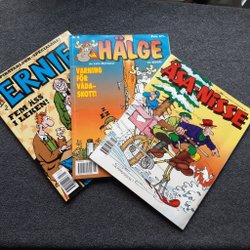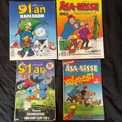 Även om Åsa-Nisse håller en särskild plats i mångas hjärtan, erbjuder Traderas utbud av serietidningar inom humor och buskis massor av andra skrattfyllda serier. Utforska kända svenska klassiker som 91:an, Larson, Knasen och Hälge - det finns något för alla smaker och skrattgaranti är nästan alltid säkerställd.