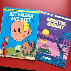 DET FALSKA ANSIKTET + AMULETTENS HEMLIGHET Spirous äventyr 1989