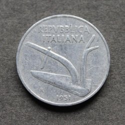 Italian 1956 Aluminum Coin 10 Lire Kv.6
