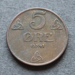 NORWAY - 5 öre 1941 - KM # 368 - Bronze
