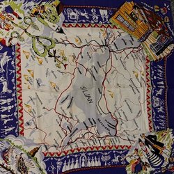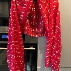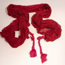 Shawl, scarf, neckerchief, long, wide with fringe. Very thin. Red and other colors.