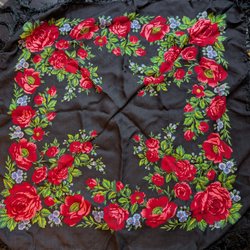 Black shawl, scarf, folk costume, local costume, cashmere, wool, roses, flowers
