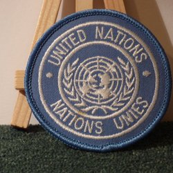 Blue, white, red fabric badge