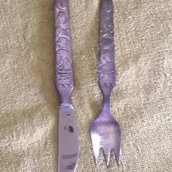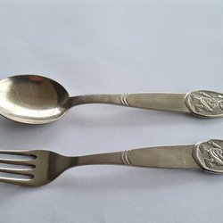 Children's cutlery, fork and knife with fine decoration Nysilver. stainless steel knife blade. Retro