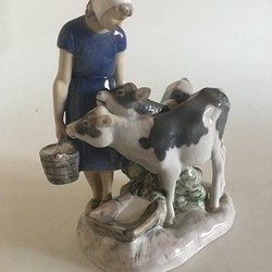 Bing and Grøndahl Figur Milkmaid, Cow and Cat No. 2017