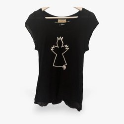 Black T-shirt with text xs