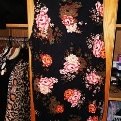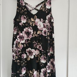 A stretchy black Lindex tank top with floral pattern in pink and green, size. L