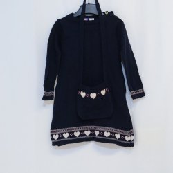 Polarn o Pyret, Size 98, Long-sleeved dress, Black, Red hearts, Bow