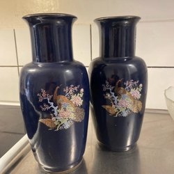 Two vases with peacock motif