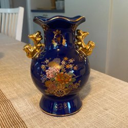 Blue vase with gold details