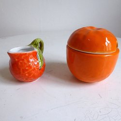 Apelsin Formad Gräddkanna och Sockerskål