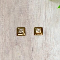 Gold plated earrings with crystals, silver stud