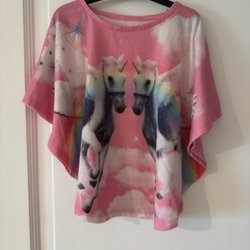 Cute t-shirt with unicorns and rainbows, size 134/140