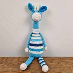 Handmade Crocheted Giraffe Plush Blue and White Soft Toy