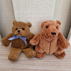 Mini Teddy Bears Pair - John West Promo & "Jeff" Blue Ribbon - Soft Plush
