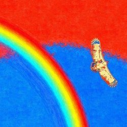 Rainbow and sea eagle on Blekinge's sky wooden board
