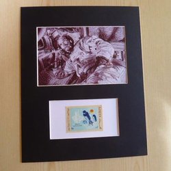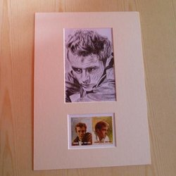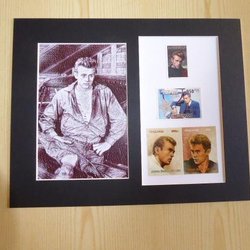 James Dean with original stamps and passepartout size A4