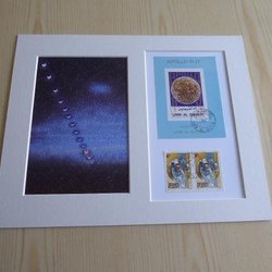 Lunar eclipse space with original Apollo stamp and passepartout 20 cm x 25 cm