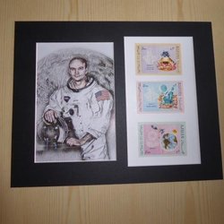 Apollo 11 space with original stamps and passepartout size 20 cm x 25 cm