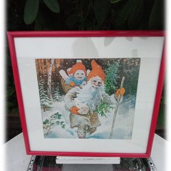 Jenny Nyström Santa painting motif of children in Santa's sack with Christmas tree