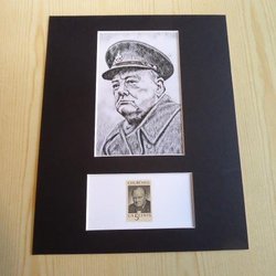 Sir Winston Churchill WWII with original stamp and passepartout 20 cm x 25 cm