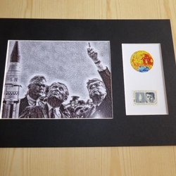 John F. Kennedy with Postage Stamp and the Moon Pop Art Sticker and Passepartout A4