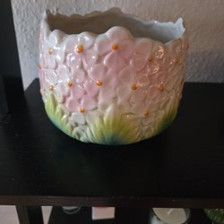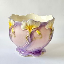 • Keramisk blomkruka med handmålade blommor