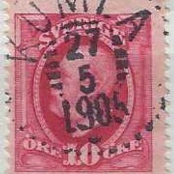SVERIGE, 2st Oscarstpl KUMLA 27/5 1905 F54,NORA 26/10 1888 F45