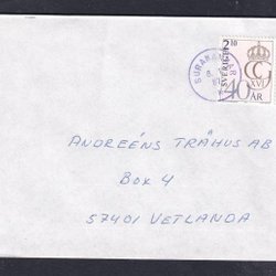 Surahammar tampon violet 8.1.87 sur lettre