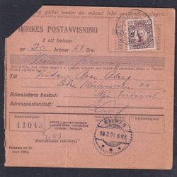 Gökalund 18/3 1921 par mandat postal