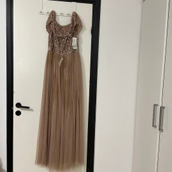 Nouvelle robe en mousseline longue sans manches Cellbes pour femme avec imprimé argenté Taille 38-40