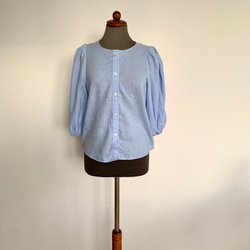H&M chemisier en lin taille S bleu clair Lin/ viscose Linen Blend manche bouffante manche ballon top