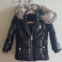 veste 158, verte à rayures à carreaux, doublée capuche amovible avec bordure en fourrure amovible NY