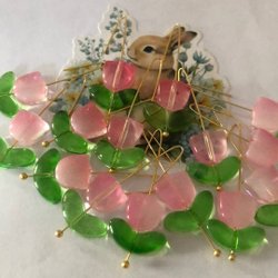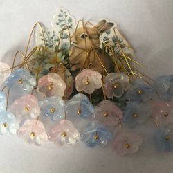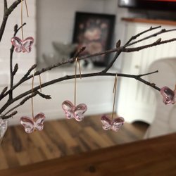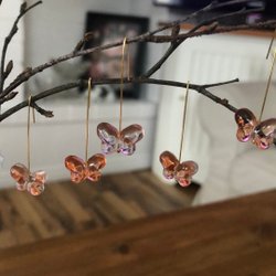 Papillons en verre 15 pièces. Bleu clair pâle. Pendentif couleur or. Décoration de branche de Pâques