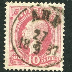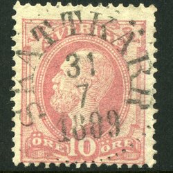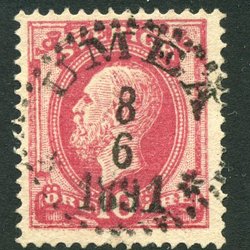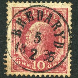 F54 O II 10 öre röd stpl. PKXP No 75 12.6.1899