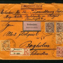 Allemagne 4x60+2x50pf sur affranchissement de 3e classe reg. infla pour la Suède, Prien 15 déc. 1921