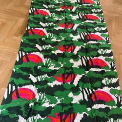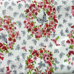 Tissu rouge reste morceau de tissu base rouge avec des fleurs roses blanches feuilles vertes 90x 197