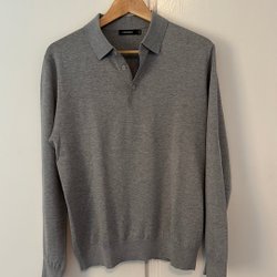 Polo à manches longues Paul & friends gris-bleu, taille M