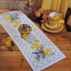 Modèle de broderie pour nappe et chemin de table avec de jolies fleurs 34x34/34x84 cm
