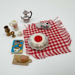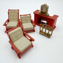Table rétro vintage deux chaises rouges chaise siège à carreaux meubles pour maison de poupée Lundby