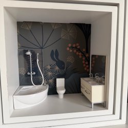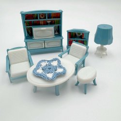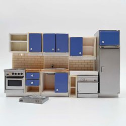 Lit blanc bleu lit double avec tables de chevet table meubles intérieur pour maison de poupée Lundby