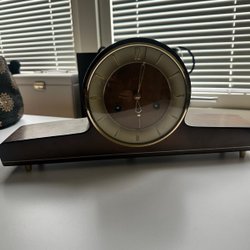 Petite horloge de table mécanique en bois sur pied fabriquée en 1974 Göteborg - Allemagne de l'Ouest
