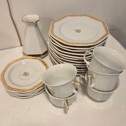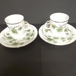 SCHERZER Bavaria Germany Service à café avec lierre - 2 tasses, 2 sous-tasses, 2 assiettes à dessert