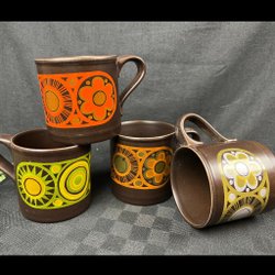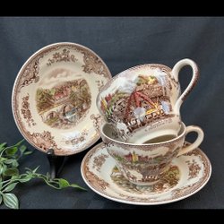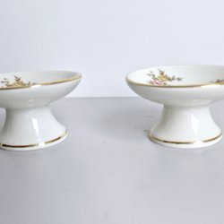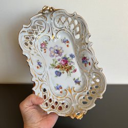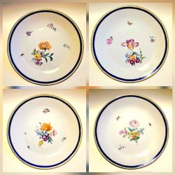 4 Fantastiques anciennes assiettes peintes à la main avec des motifs floraux uniques et un bord doré